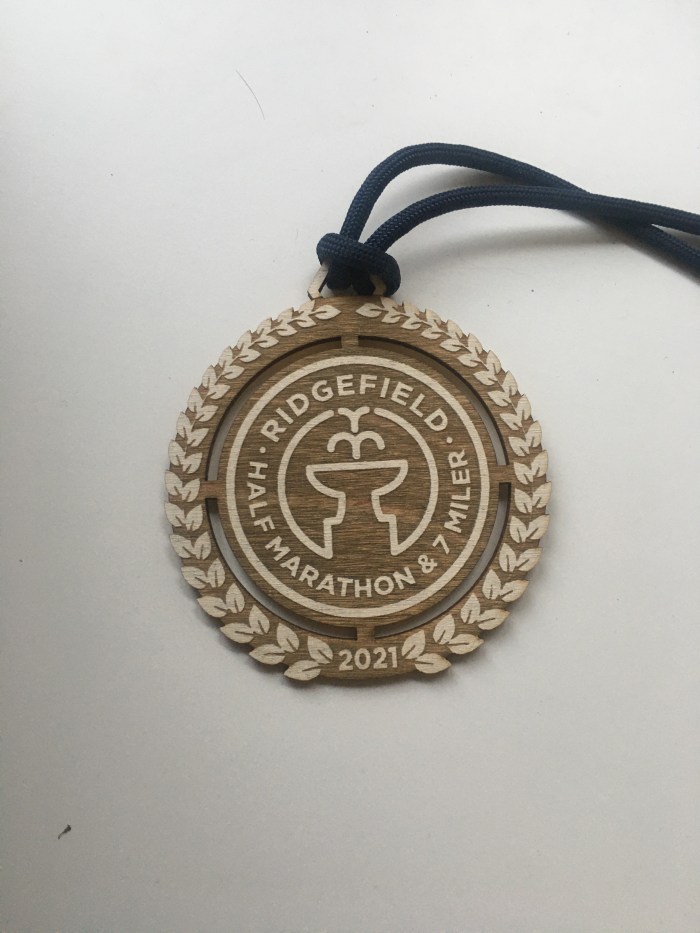 I’ve run by this house six or seven times over the past 10 years – it sits at about the 5 and the 10 mile mark of the Ridgefield Half Marathon. In fact, think I’ve run this race more than just about any other race – there’s something about the season (it’s always in October), the weather (it’s generally crisp with peak leaves) and the fact that it’s super well-organized (this year they gave out locally crafted wooden medals and a very comfortable hoodie.)