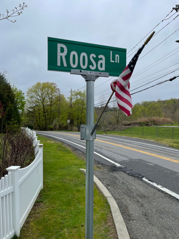 Now, as you will note, Roosa Lane does not have a star on it as other street signs do, but it DOES have a flag. While I’m still researching this, I believe the older streets (such as Feeney and Bayden for example) have the star while more recent ones, like Roosa, are demarcated with a flag.