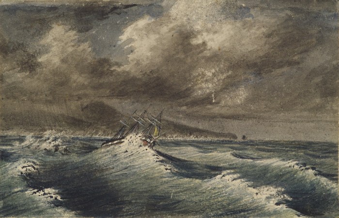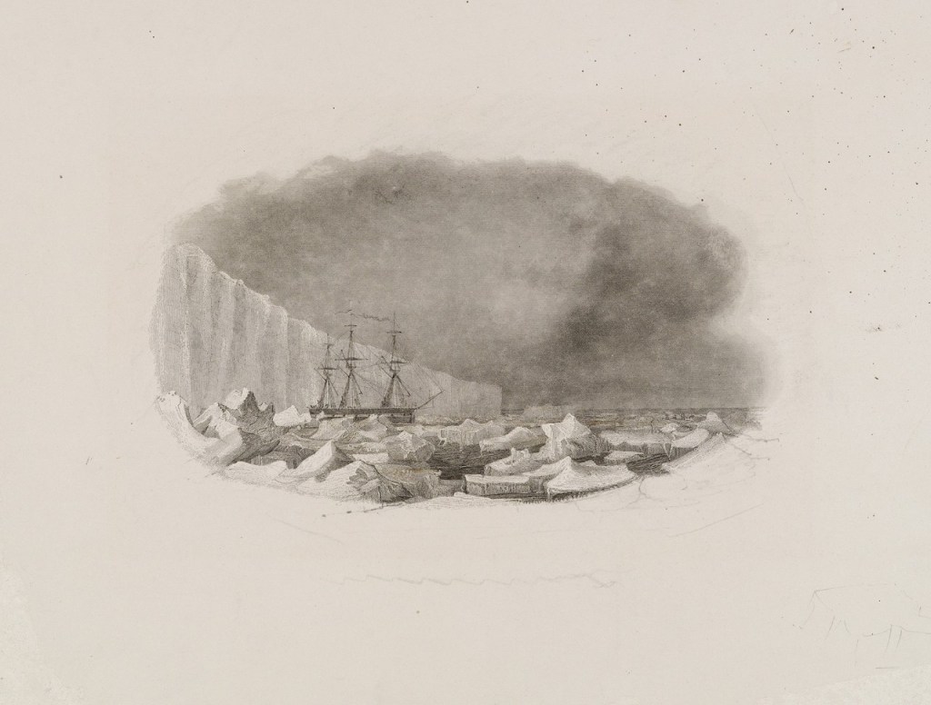 This image was likely sketched by Lt. Wilkes and then cleaned up by Alfred Agate later as Agate did not embark on either Antarctic mission of the US XX.